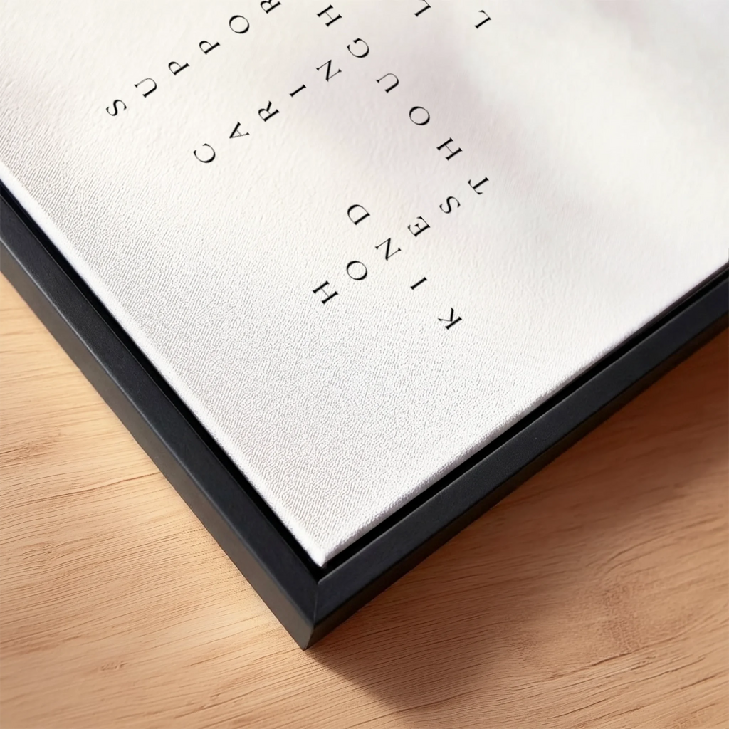The canvas is also available with an integrated decorative frame in white or black.
