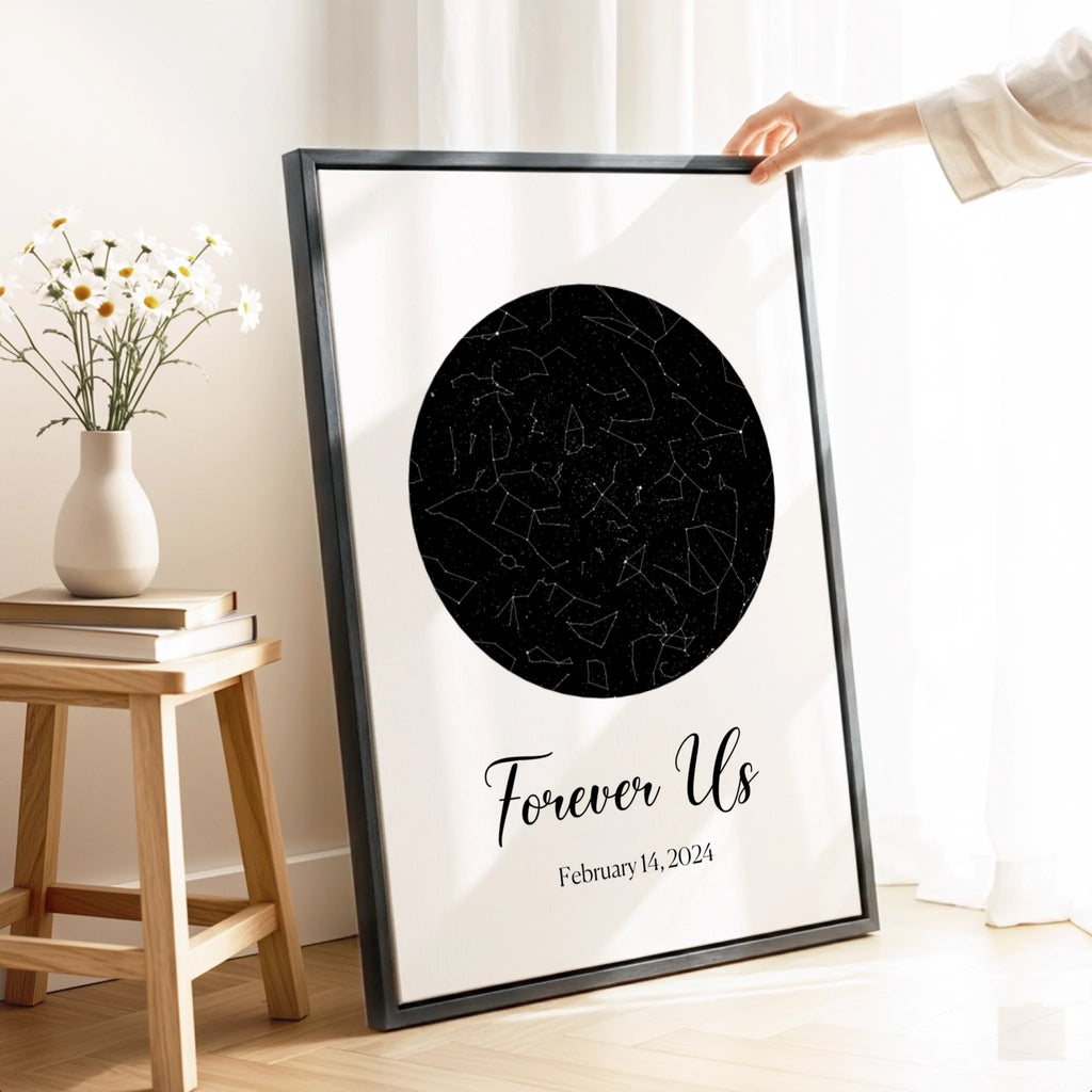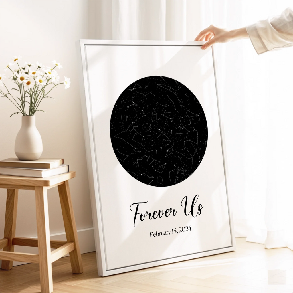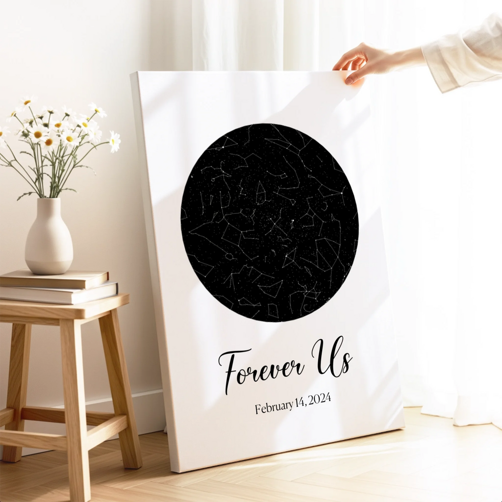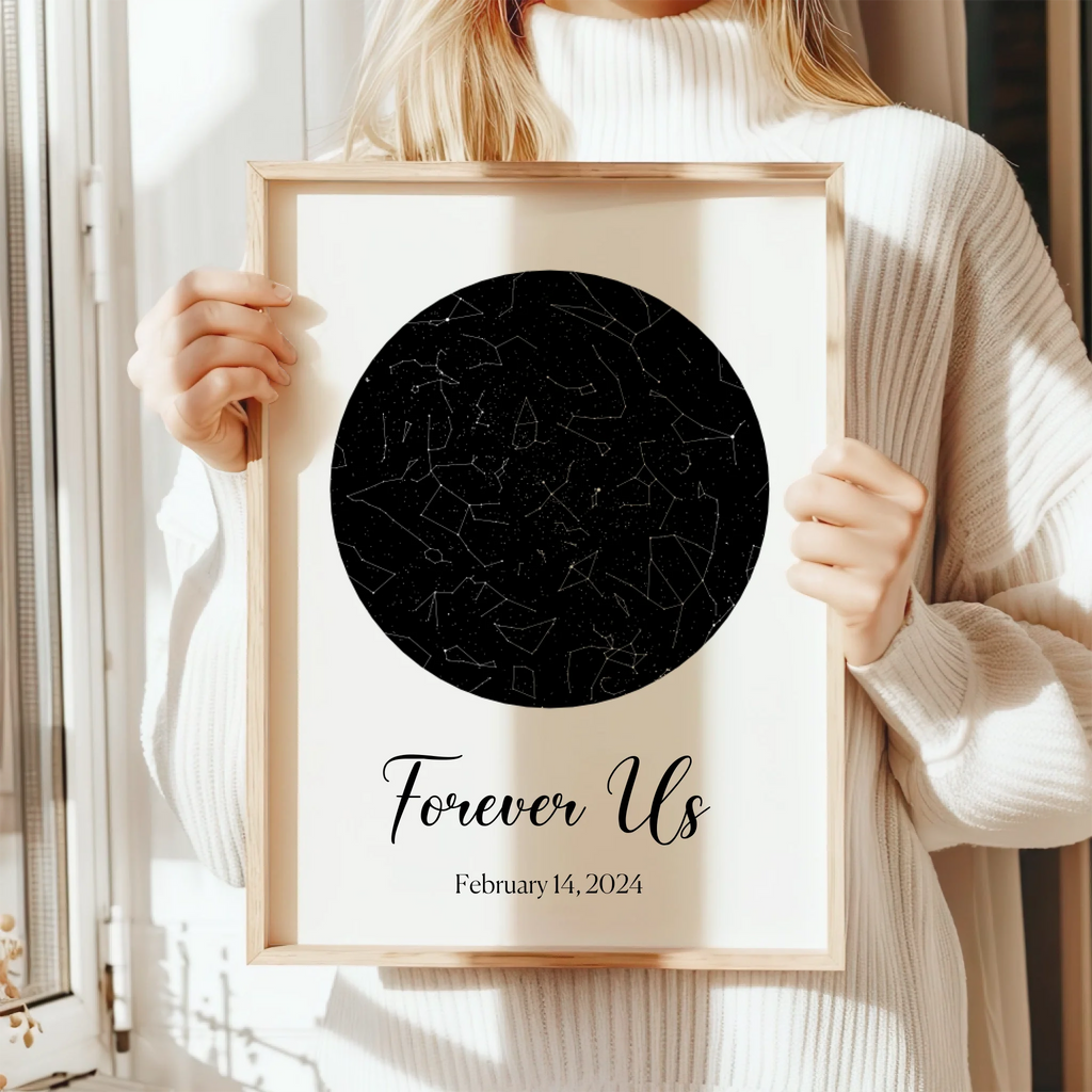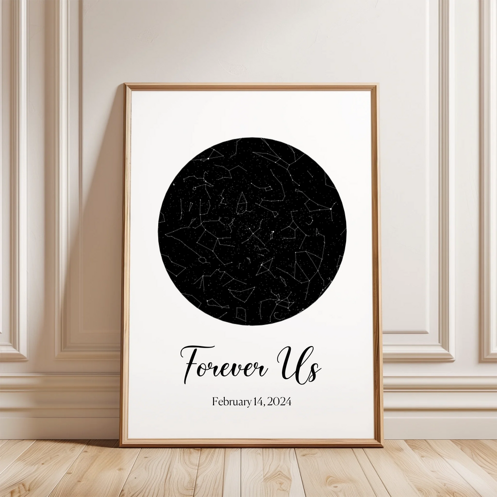 A personalized star map capturing the exact night sky of your special moment. Thoughtfully crafted to preserve a memory that matters. Truly personal, perfect for Valentine's Day.